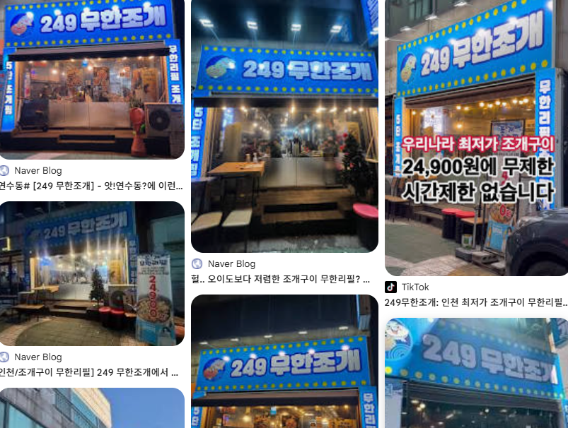 인천 연수구에 위치한 249무한조개는 2TV 생생정보 2435회에 소개된 조개구이 무한리필 전문점입니다.